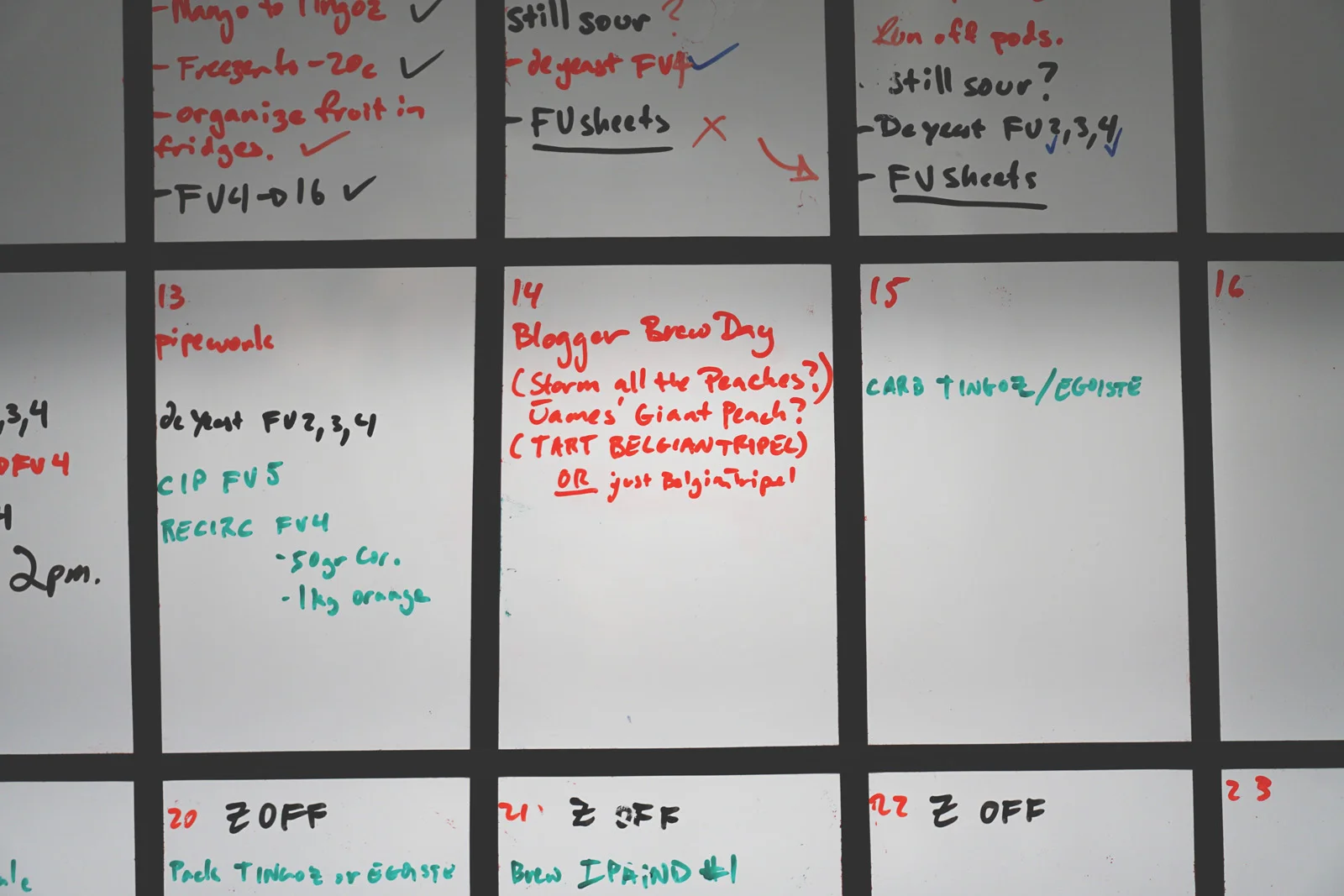 Naming the beer proved to be almost equally as difficult as we all sat around a table attempting to out pun each other. Titles such as 'Storm the Peaches' and 'James and the Giant Peach' were thrown into the mix but eventually it was put to a vote and we unanimously decided to call the beer 'Peach Therapy'. It seemed appropriate given the nature of the brew day. It's a good job there was plenty of beer available after a long day.