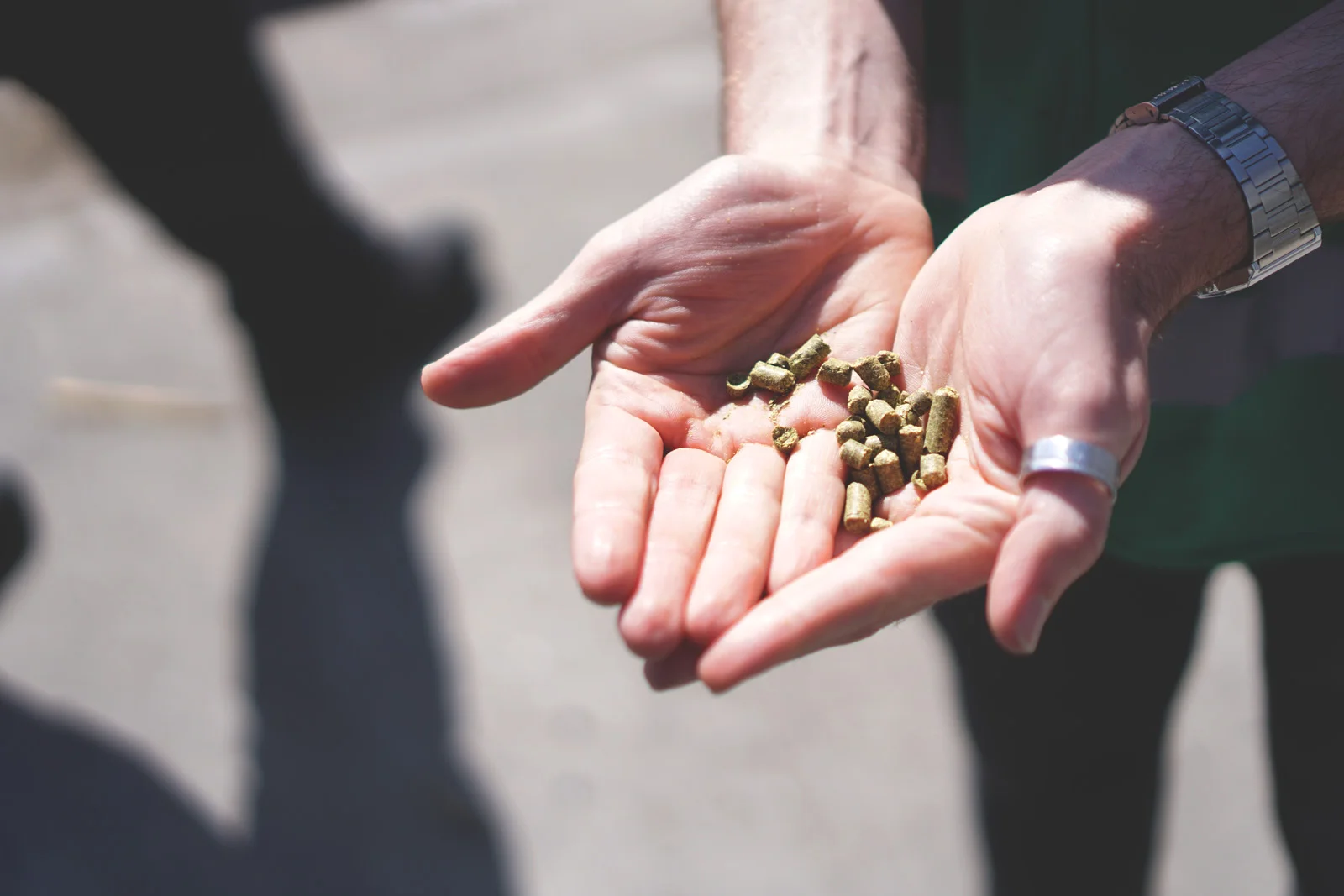 Brewing takes a long time, most of it is heating stuff up, cooling stuff down and cleaning, constant cleaning. While our brew heated up we were given a lengthy tour of the main brewery. Nick hands us Punk IPA straight of the bottling line as thousands of bottles clink there way into hundreds of cardboard boxes. Eventually we're led to a refrigerated shipping container that Brewdog use as a hop store. We set about opening up various backs of pelletised hops, rubbing them between our hands to break them and release their pungent aromas. Eventually we settle on two varieties for our beer.
