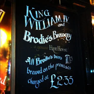 On Sunday I finally had a damn good reason to visit Leyton, Magic Rock, one of my favourite breweries were taking over the taps at the King William IV which are usually occupied by Brodie's beers whose brewery is located in the back of the pub. In addition to that a huge amount of the excellent beery friends I've made on twitter were heading down too, so it was an excellent opportunity to put some faces to screen names as well as drinking some excellent beers. I made the arduous journey from where I work in Wembley all the way to Leyton and eventually found myself standing in front of the pub, a fantastic Victorian building that added much needed grandeur to the rather dilapidated Leyton High Road. There was a sign outside the pub proudly heralding that Brodie's beers were brewed on the premises and that they were only £2.35 a pint.
